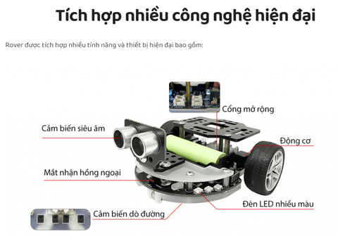 Robot Rover hỗ trợ học sinh học ngôn ngữ lập trình kéo thả khối lệnh và cả các ngôn ngữ lập trình nâng cao như Python và C (Arduino) – Phù hợp với những người mới bắt đầu từ con số 0 cho đến cả những người đã am hiểu và muốn tìm hiểu sâu hơn về lập trình robot STEM.